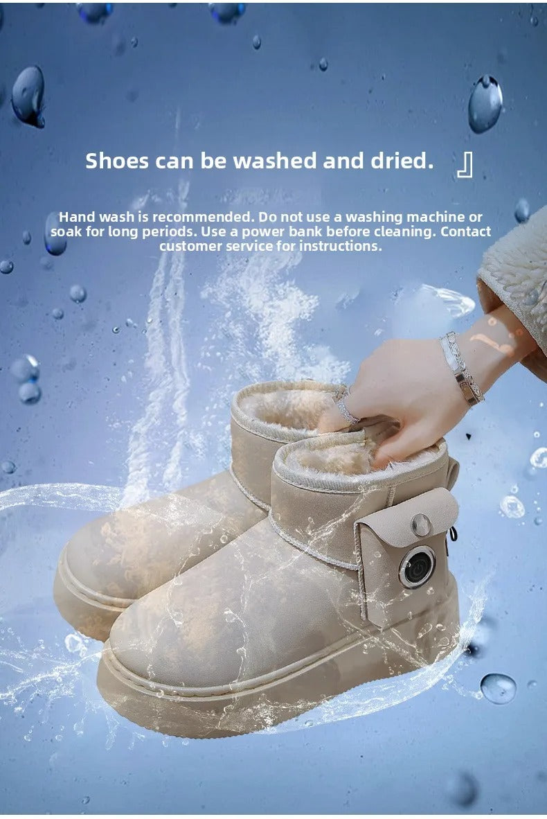 Botas de nieve eléctricas en cuero PU de alta calidad, con calefacción, unisex, zapatos cálidos, impermeables, antideslizantes, ligeras, cómodas, a la moda, para invierno.