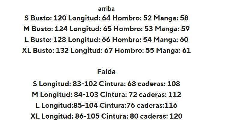La talla se refiere a las dimensiones de la prenda, NO a las medidas de su cuerpo.