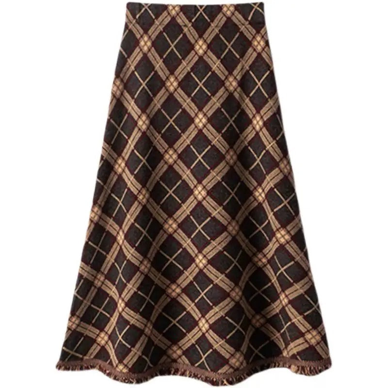 Descubre el encanto otoñal de nuestra falda larga escocesa, diseñada para recibir los meses más frescos con estilo. Confeccionada en un cálido tejido invernal, esta falda presenta un clásico estampado a cuadros que combina a la perfección con cualquier conjunto. Los flecos muy cortos bordean delicadamente el bajo, añadiendo un toque de originalidad sin renunciar a la elegancia. Versátil y refinada, puedes combinarla fácilmente con jerséis oversize o blazers para un look chic y acogedor. ¡No dejes pasar la oportunidad de enriquecer tu armario con esta auténtica prenda imprescindible!